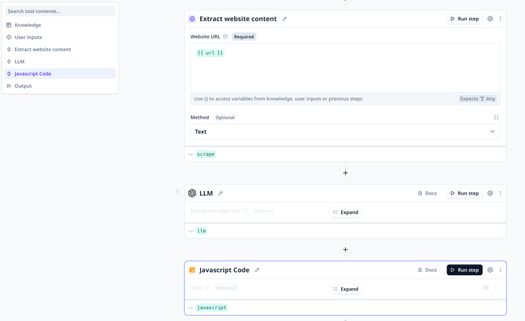 Once your tool is created, the next step is to add and configure steps tailored to your specific needs. Here’s a breakdown of how to do this: